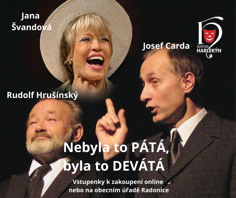 už teď si můžete zakoupit lístky na nadcházející divadlo “Nebyla to pátá, byla to Devátá“, které se bude konat 13. 5. od 20:00 hod. v sálu Radonické Besedy.