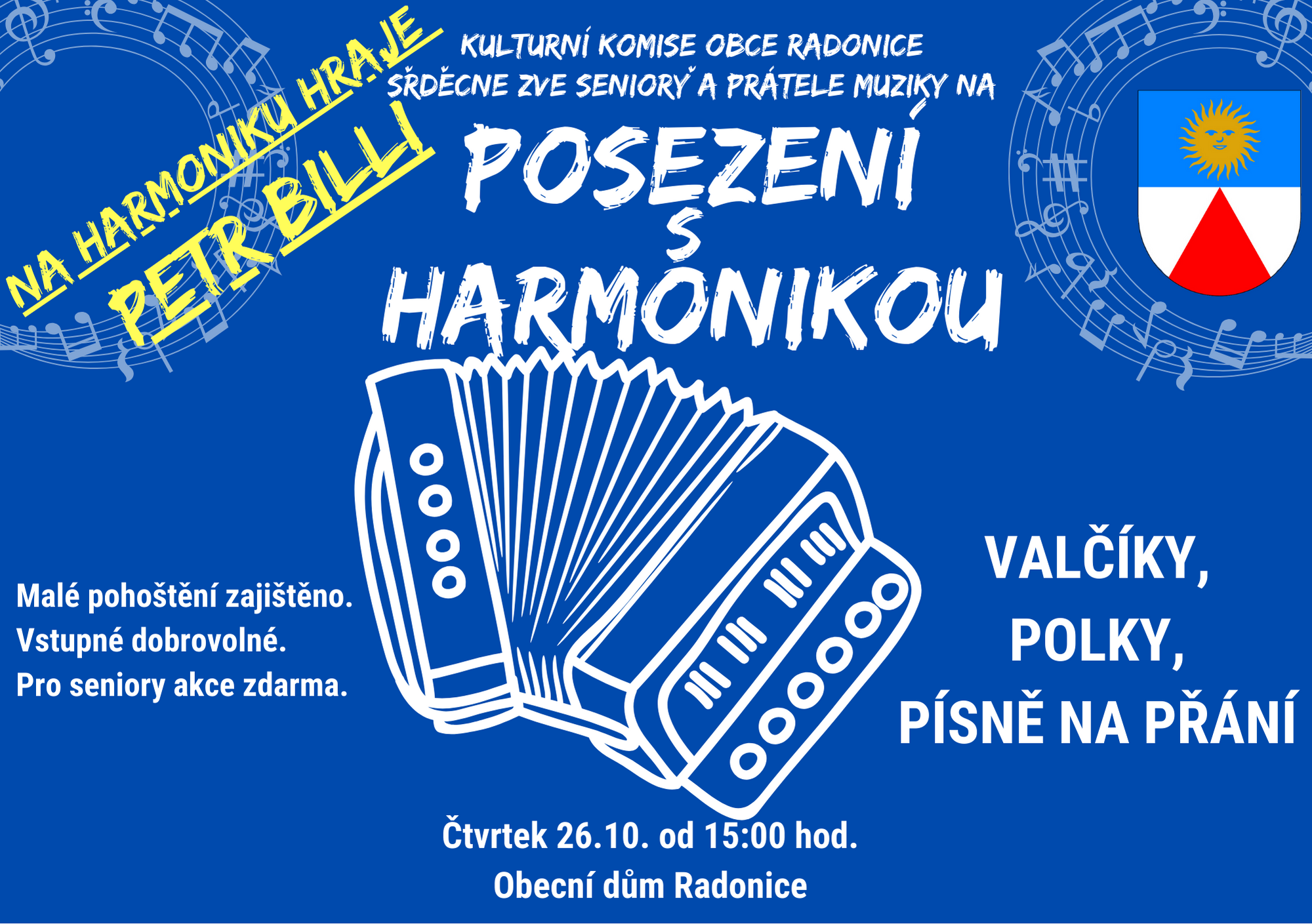 Kulturní komise obce Radonice srdečně zve seniory a přátele muziky na