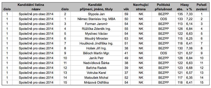 VÝSLEDKY VOLEB DO ZASTUPITELSTVA OBCE RADONICE konaných ve dnech 10. – 11. ŘÍJNA 2014