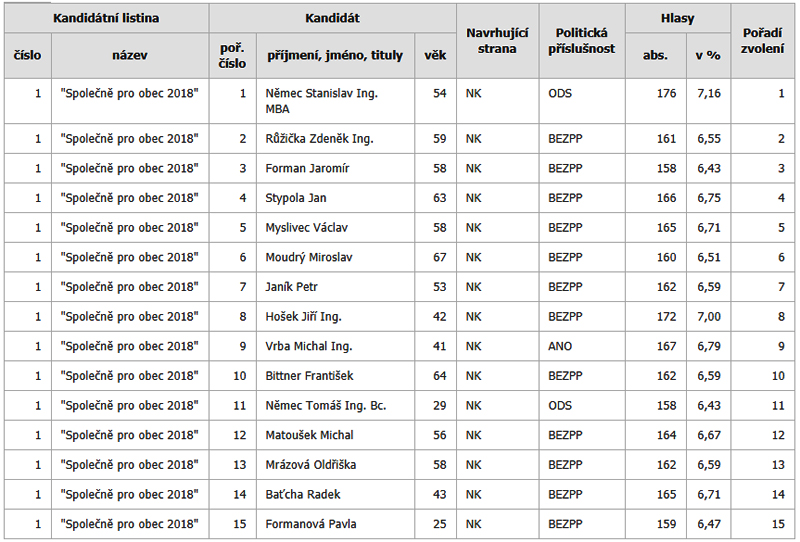 VÝSLEDKY VOLEB DO ZASTUPITELSTVA OBCE RADONICE konaných ve dnech 5. – 6. ŘÍJNA 2018