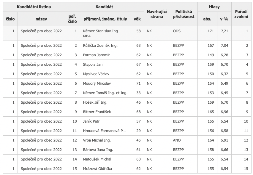 VÝSLEDKY VOLEB DO ZASTUPITELSTVA OBCE RADONICE konaných ve dnech 23. – 24. ZÁŘÍ 2022