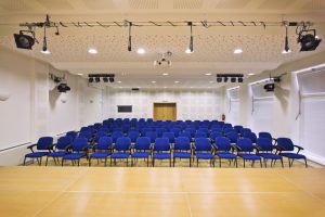 K dispozici je také kompletní audio/video technika, osvětlení jeviště, případně kabina pro zvukaře.