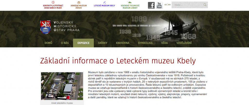 Muzeum bylo založeno v roce 1968 v areálu historického vojenského letiště Praha-Kbely, které bylo první leteckou základnou vybudovanou po vzniku Československa v roce 1918. Početností a kvalitou sbírek patří k největším leteckým muzeím v Evropě. V současnosti má ve sbírkách 275 letadel, z nichž téměř sto je vystaveno v krytých halách, 25 v nekrytých expozičních prostorech, 155 je uloženo v depozitářích a 10 letuschopných je provozováno. Řada letounů patří ke světovým unikátům. Expozice muzea se vztahuje bezprostředně k historii československého a českého letectví, zvláště vojenského. Pro srovnání jsou zde vystaveny také vybrané typy světově významných letadel a kromě toho i množství leteckých motorů, součásti draků letounů, výzbroj, výstroj, stejnokroje, prapory, vyznamenání a další památky, které se vztahují k historii československého a českého letectví.